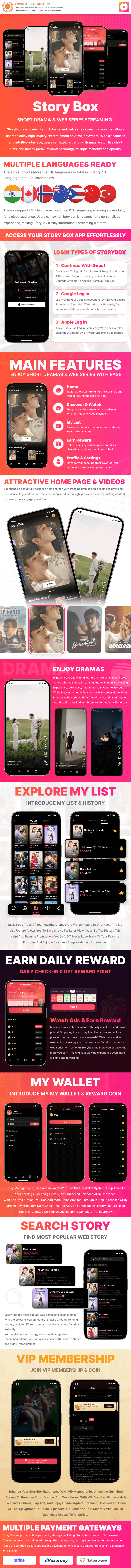 StoryBox is a fully-featured OTT streaming app that enables customers to look at stay quick dramas and internet sequence, unlock episodes utilizing cash, advertisements, or VIP subscriptions, and revel in a seamless viewing expertise. With multi-language assist, a built-in pockets, a reward system, and a number of monetization choices, this app is ideal for launching your individual streaming platform.