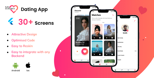 Courting App is UI Part + UI package, This UI Package comes with round 20+ Screens and it’ll workes in each platform android and iOS. This UI lets you develop stunning and feature-rich apps. you may take some a part of the code no matter you want and implement it into your code. Our Code is effectively organized with all folders, file names, class title variable, and features. In addition to it’s well-named makes this code straightforward to reuse and customise.