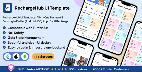 RechargeHub UI Template is a modern, fashionable app template designed for On-line Recharge Ticket Reserving & Invoice App. Constructed utilizing the Flutter 3.x framework, this template is absolutely customizable and may create lovely and intuitive Recharge apps for Android and iOS platforms.