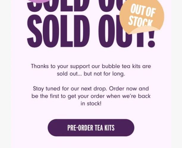 Pearly is a bubble tea package model that provides cafe-quality boba you can also make at dwelling. Its out-of-stock e mail template builds hype with a daring, layered “offered out” typography.