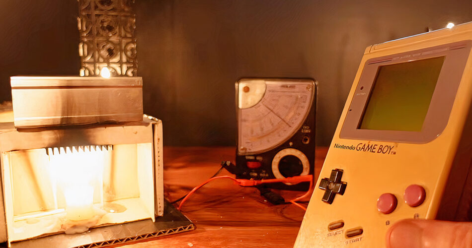 It began with a cardboard field reduce to carry your complete stack regular above a tea mild candle. The wires merely related the module to the Sport Boy’s energy port, eliminating the necessity for batteries. The preliminary check confirmed that energy was flowing, however solely simply barely, with a studying of two volts. Turning on the console immediately lowered the voltage beneath what was even usable. However as they doubled up on the modules and included two candles, the figures skyrocketed, reaching 4 volts or extra. The Sport Boy powered proper up, and Tetris blocks started dropping onto the display screen as traditional. The sound functioned, the controls responded accurately, and it was working simply as anticipated.