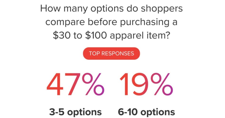 One of many examine’s central arguments is that client journeys start with open-ended comparability, not dedicated intent. Based on RTB Home, 78% of consumers consider three or extra choices earlier than finishing a purchase order, combining those that evaluate 3-5 merchandise, 6-10 merchandise, and greater than 11. This habits holds throughout value bands. For a comparatively modest attire buy within the $30 to $100 vary, 47% of respondents evaluate between 3 and 5 choices, whereas 19% consider between 6 and 10. The numbers shift however don’t collapse for high-value purchases: for a $1,000 to $2,000 merchandise, 29% evaluate 3-5 choices and 22% evaluate 6-10.