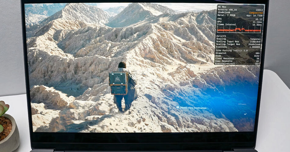 CrossOver handles the interpretation work, changing Home windows sport directions into one thing macOS can course of and swapping DirectX requires Steel, with MetalFX upscaling obtainable to sharpen visuals with out hitting efficiency. Tsai ran every thing on a completely loaded MacBook Professional with the 40 core GPU model of the M5 Max, 48GB of reminiscence, and 18 CPU cores. Most video games have been examined at 1440p with a handful pushed to 4K, adjusting settings all through to maintain body charges as easy as attainable.