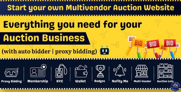 - KYC Verification: Built-in id doc approval workflow for bidders.