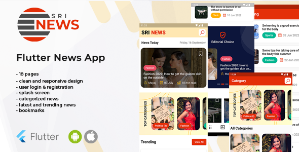 SriNews Information App is a cell information Template which may develop to run each Android platform & Ios platforms.