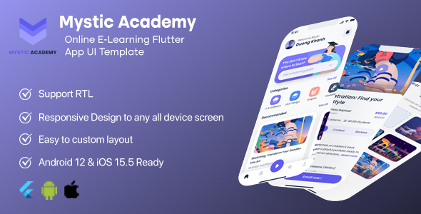 Mystic Academy – On-line E-Studying Flutter App UI Template