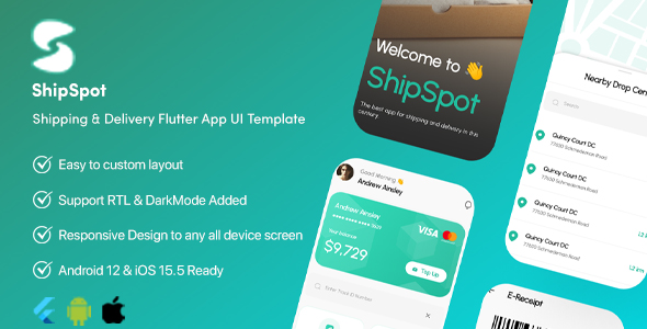 “ShipSpot UI equipment can be utilized for Make a Delivery Order, Examine Charges, Examine Close by Drop, & Assist Heart in android and ios gadgets. “ShipSpot UI equipment can save your time to code all Entrance finish format. Simple to attach along with your again finish.