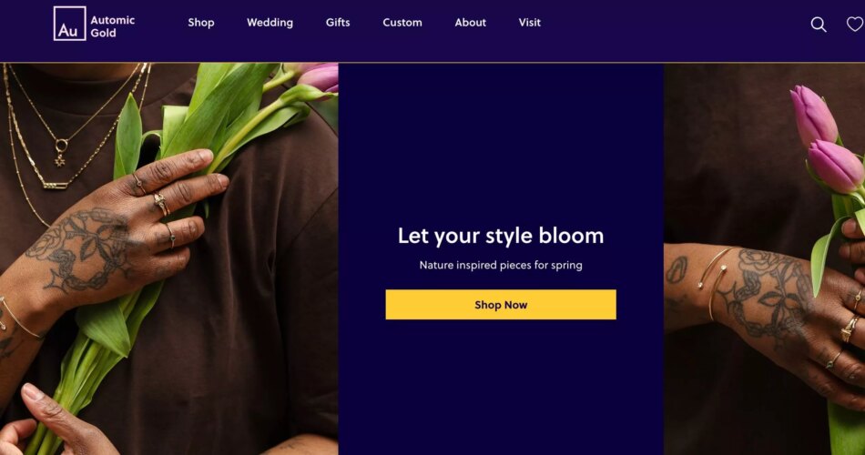 Shopify jewelry stores: Automic Gold home page