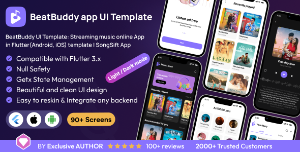 BeatBuddy UI Template is a smooth, fashionable app template designed for Streaming music on-line App. Constructed utilizing the Flutter 3.x framework, this template is totally customisable and might create stunning and intuitive Music apps for Android and iOS platforms.