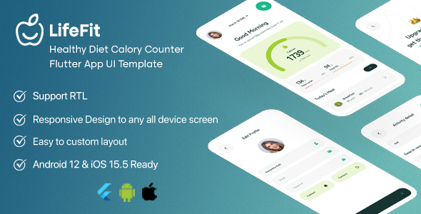 LifeFit – Wholesome Weight loss program Calory Counter Flutter App UI Template
