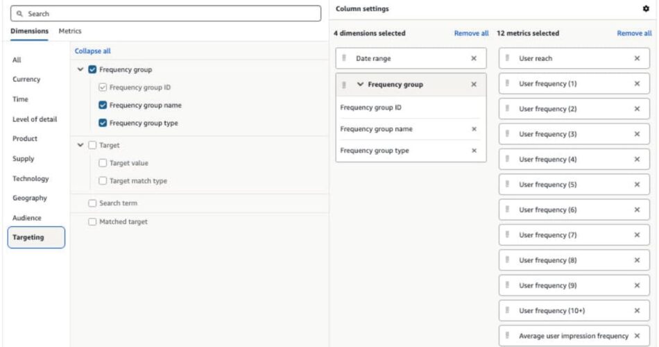 In February 2026, Amazon expanded that with customized cross-campaign de-duplicated attain and frequency reporting damaged down by advertiser account, provide supply, and frequency group – with versatile time granularity and customized time interval choices. That February launch additionally launched the power to measure de-duplicated attain for a world account throughout related Amazon DSP and Sponsored Advertisements advertiser accounts.