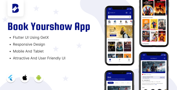 BookYourShow – BookMyShow is a Flutter App UI Package for Buyer. BookYourShow – BookMyShow app is properly designed and developed utilizing flutter, open-source cell software improvement SDK created by Google for constructing natively compiled functions (Android and iOS) from a single codebase.
