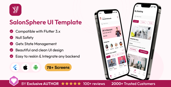 SalonSphere UI Template is a modern and trendy app template designed for reserving salon providers. Constructed utilizing the Flutter 3.x framework, this template is absolutely customizable and can be utilized to create stunning and intuitive salon reserving apps for each Android and iOS platforms. With its clear and user-friendly interface, SalonSphere makes it simple for purchasers to browse providers, view pricing and availability, and e-book appointments with just some faucets. Whether or not you’re a salon proprietor seeking to create a customized reserving app for your enterprise, or a developer searching for a high-quality UI template to jumpstart your venture, SalonSphere is the right resolution.