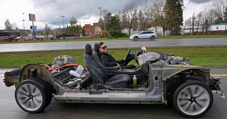 Remmy Evans discovered by way of a buddy that a Tesla Mannequin 3 was sitting in some man’s driveway in Idaho. The proprietor had purchased it cheaply with the intention of eradicating the drivetrain and putting in it in an outdated automotive from the Seventies, however he deserted the plan after realizing how a lot time the physique work would take. Evans was in a position to negotiate a worth of precisely $2k and stroll away with a rolling chassis that was nonetheless able to shifting by itself.