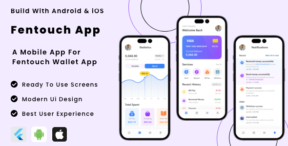 Our FenTouch App – Pockets Finance | On-line Banking Flutter App | Android | iOS Cellular App Template empowers your enterprise with a scalable and dependable answer that enhances operational effectivity, improves buyer satisfaction, and drives progress. With its cross-platform compatibility, you’ll be able to attain a broader viewers by launching your app on each iOS and Android platforms.