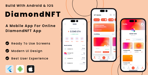 Our DiamondNFT App – NFT Market Shopping for & Promoting Flutter App | Android | iOS Cellular App Template empowers your small business with a scalable and dependable resolution that enhances operational effectivity, improves buyer satisfaction, and drives development. With its cross-platform compatibility, you may attain a broader viewers by launching your app on each iOS and Android platforms.