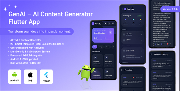 AI Textual content Generator – Superior AI Content material & Picture Generator (Flutter + PHP Admin Panel)