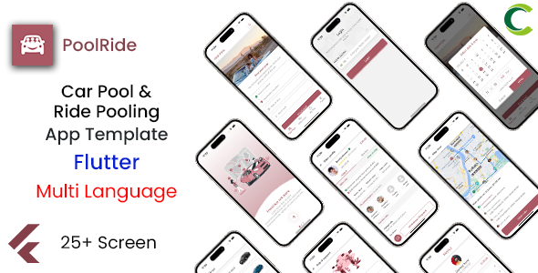 PoolRide – Automobile Pooling & Journey Sharing App template in Flutter | Multi Language